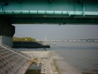 ♪♪・・・・・・・・・・・・・・・・・・・・・・・・・・・・・・・・・・♪♪ 荒川の土手をそのまま下流へ向かって歩く。日曜日とあって河川敷は草野球の試合やら何かの 演習やらピクニックな若者達やらでにぎわっている。何よりも多かったのは、上半身裸または水 着姿の老若男達。海へ行く前にカッコ良く焼いておこうって処か(爆)。ま、そんな事はどうで も良いが、平井水上ステーションから約 3キロ程歩くと青い船堀橋が見えて来る。この橋の下は 第14話のクライマックスクウガとピラニア怪人決戦の舞台となった砂浜である。この辺りは潮 の香りがする程東京湾に近くて、そのせいか干潮と満潮があるらしい。