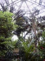 ♪♪・・・・・・・・・・・・・・・・・・・・・・・・・・・・・・・・・・♪♪ グロンギのトンネル(←勝手に名付た^^;)を抜けて駅東口へ戻りバスで川口市立グリーンセ ンター へと向かう。ここは全く事前調査をしていなかったので現地へ行って見るまでは何がど う出るか分からない場所。だが、園内へ一歩踏み込んだ途端私の目に飛び込んで来たのは大温室 の丸いガラスの建物。その外観だけですぐに分かった。第13話でグロンギ(人間体)が集まっ ていた植物園のような場面はここで撮られていたのだ。コウモリ男へ投げつけるカメレオン男の 名台詞「ズからメへ、時代は移ったのだ」のシーンである。