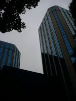 そして現地へ行って驚いた。最初に「ここ見た事がある」と思ったのは当然で、ドコモショッ プのある大森ベルポートは大手自動車会社や銀行、郵便局などが入った同じ基調の6つのビル群 で構成された商業施設だが、私の会社の関連部署がある建物のすぐ隣(汗)。この関連部署へは 何度か仕事で来ているが、一度だけ建物周辺を歩いた事があり、その時に「綺麗なビルだなぁ」 と思って見上げたのがこの大森ベルポートだったのだ。灯台元暗しとはまさにこの事(^^;