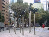 その足で近くの池袋西口公園へと向かう。第3話でバッタ怪人(弟)ズ・バヅー・バの人間体 が「お金」に興味を持ち 拾った1円玉を女子高生に差し出すシーンを撮影したのがこの西口公 園中央にある噴水の前。古代から甦ったグロンギ族が現代文明に触れ、言葉を覚え、急速に知的 水準が上がって行く伏線とも言える印象的な場面だった。