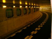 すぐ近くにある歩行者用の入口を降り て行くとそこは何と第4話でグロンギの 人間体がたむろっていたトンネル。車 道と歩道を遮る壁に八角形の穴が開いて いる個性的なトンネルでオレンジ色の妖 しい照明がとってもグロンギ的(笑)。